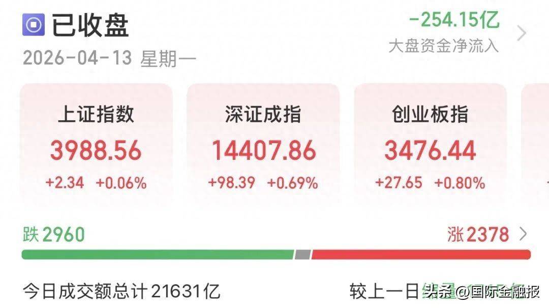 当天A股低开高走,主要指数翻红。沪指收涨0.06%报3988.56点,创业板指收涨0.8%报3476.44点,深证成指收涨0.69%。沪深300、科创50、北证50均微红,上证50平盘。