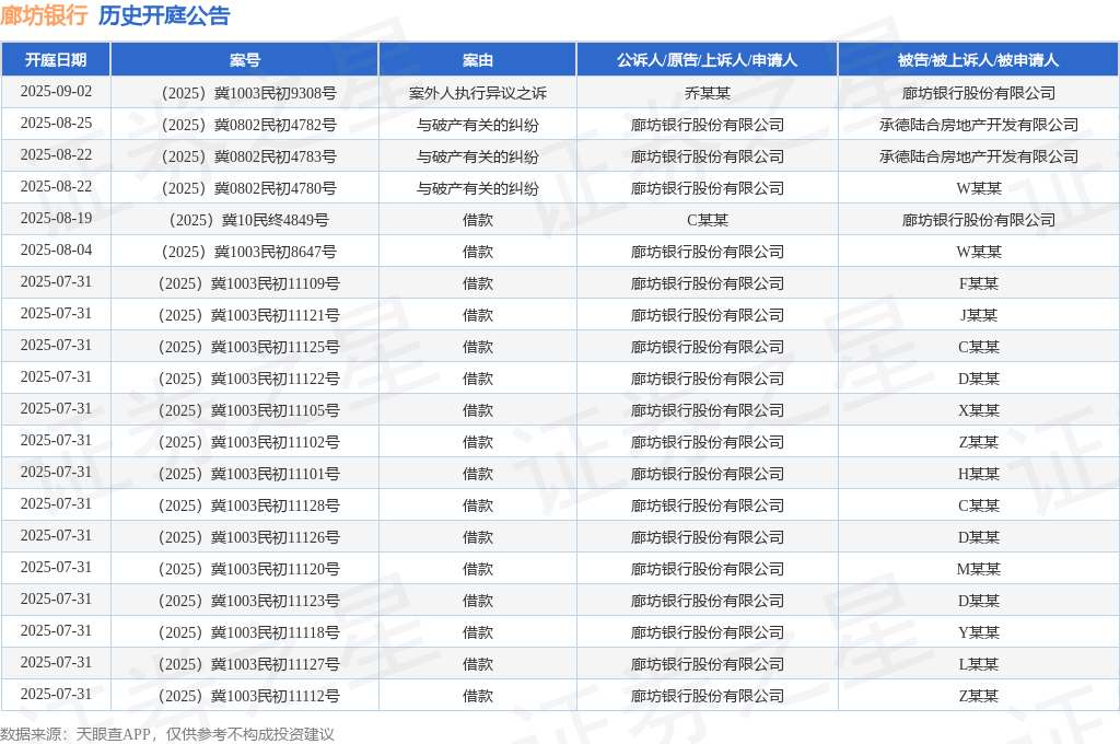 本站音讯,凭证天眼查APP显露Kaiyun体育下载,近日公布了一则廊坊银行股份有限公司手脚被告/被上诉东说念主的开庭公告,详备实质如下: