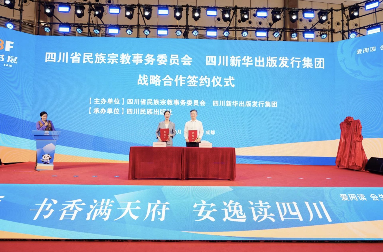 四川省委统战部副部长、四川省民族宗教事务委员会党组布告陈武,四川省民族宗教事务委员会主任宋秋,四川新华出书刊行集团党委布告、董事长周青等出席行径。宋秋与周青看成两边代表签署策略合同。来自中国邮政四川省分公司、民航西南空管局等多方代表,以及各人学者、作家代表等百余东说念主共同见证了这一典礼。